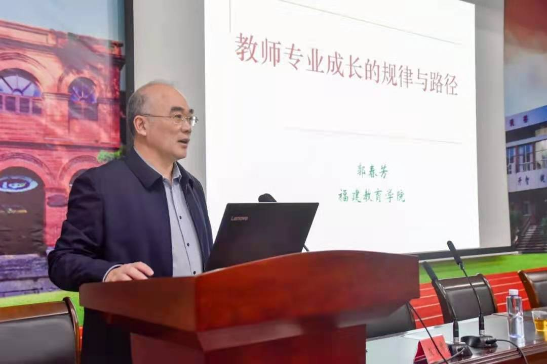下午活动安排两场学术讲座。第一场在格致楼阶梯报告厅,我校邀请了正高级教师、特级教师、省普通高中课程教学指导委员会委员聂国先老师,作题为《新高考新课标新教材背景下的教学策略与实操技术》的学术报告。聂国先老师深入浅出,旁征博引的给大家阐释了新高考新课标新教材背景下的教学策略与实操技术。他指出,要加强对新课标新教材的研究,注重培养学生的综合实践能力,要注重高考学科校本作业的继承创新。聂国先老师的讲座生动形象,幽默风趣,赢得了全场老师的阵阵掌声。第二场在图书馆报告厅,我校邀请了福建教育学院党委书记郭春芳教授,作题为《教师专业发展的规律与路径》的学术报告,主题围绕“教师成长轨迹与知识结构”“教师专业成长的二次发展”“教师专业成长的六条路径”等方面,对“教师专业发展的规律与路径”作了全面、深入、系统的阐述。他指出,加强教师队伍建设,要积极探索新时代教育教学方法,不断提升教书育人本领。他分享了教师从新任教师到合格教师到成熟教师再到名师的专业发展轨迹,详细介绍了教师职业生涯与知识结构变化,着重讲解了优秀教师两次成长的区别,阐述了教师专业成长要“明师德、定规划、亲学习、强实践、深反思、重研究”等六条路径。他鼓励大家争取做一个“一辈子做教师,一辈子学做教师”的教师,做一个具有教育情怀的教师。报告在欢声笑语中结束,大家纷纷表示受益匪浅。