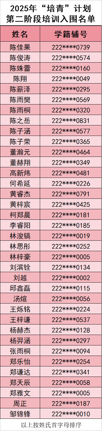 2025年“培青”计划第二阶段培训入围名单